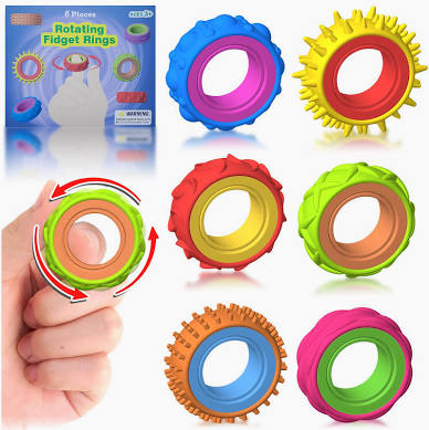 Silcone Rotating Fidget Rings- 6pkt